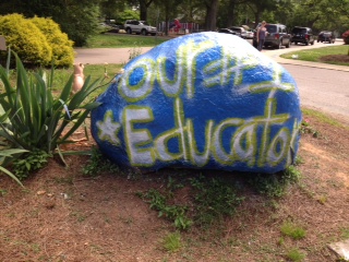 For those of you that may not have seen “the rock”, here are pics of the freshly painted rock to celebrate Principal Garvin’s May 17th birthday. If you see him or your child does, be sure to wish him a Happy Happy Birthday!