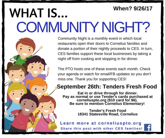 WHAT IS COMMUNITY NIGHT? September 20, 2017 Share this: Click to share on X (Opens in new window) X Click to share on Facebook (Opens in new window) Facebook Click to print (Opens in new window) Print Click to email a link to a friend (Opens in new window) Email Like Loading... Related