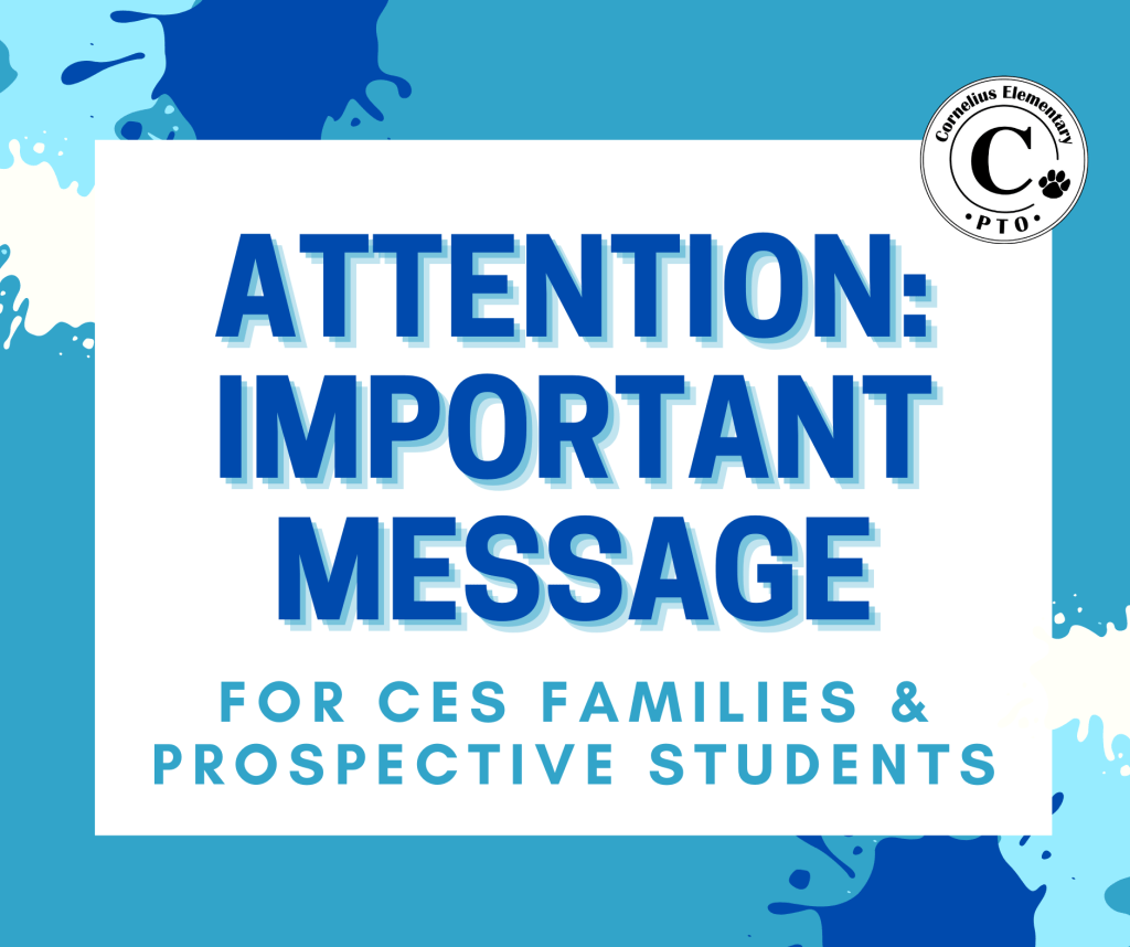 All rising kindergarten students AND former CES students currently enrolled at other schools who plan to attend Cornelius Elementary for the 2021-2022 school year must re-register at CES as soon as possible.