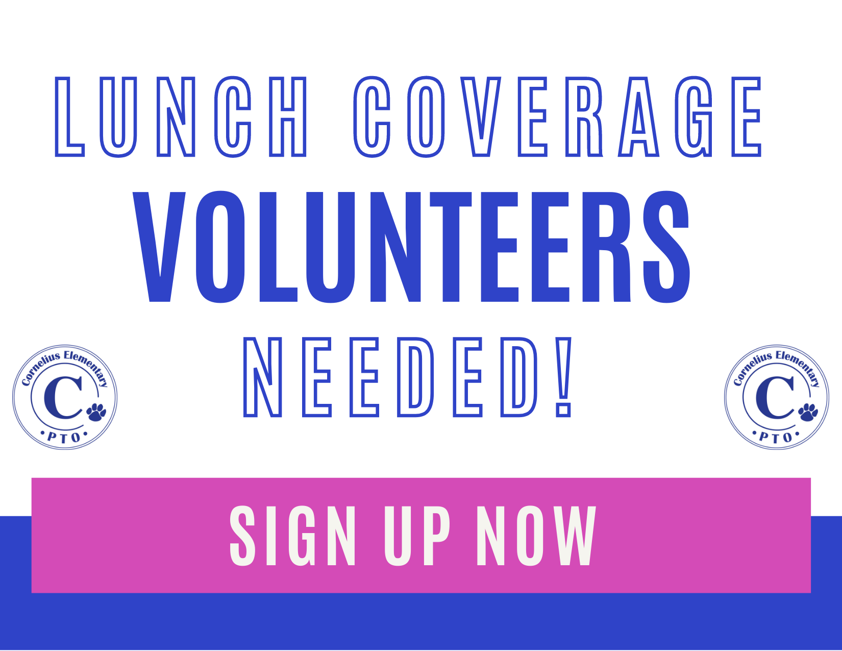 Volunteers… now’s your chance to help where we’re needed most! The PTO is looking for volunteers to provide lunchtime coverage for our hard working CES teachers. Signing up to volunteer allows the PTO to ensure a duty-free lunch to teachers from two grades, each day.