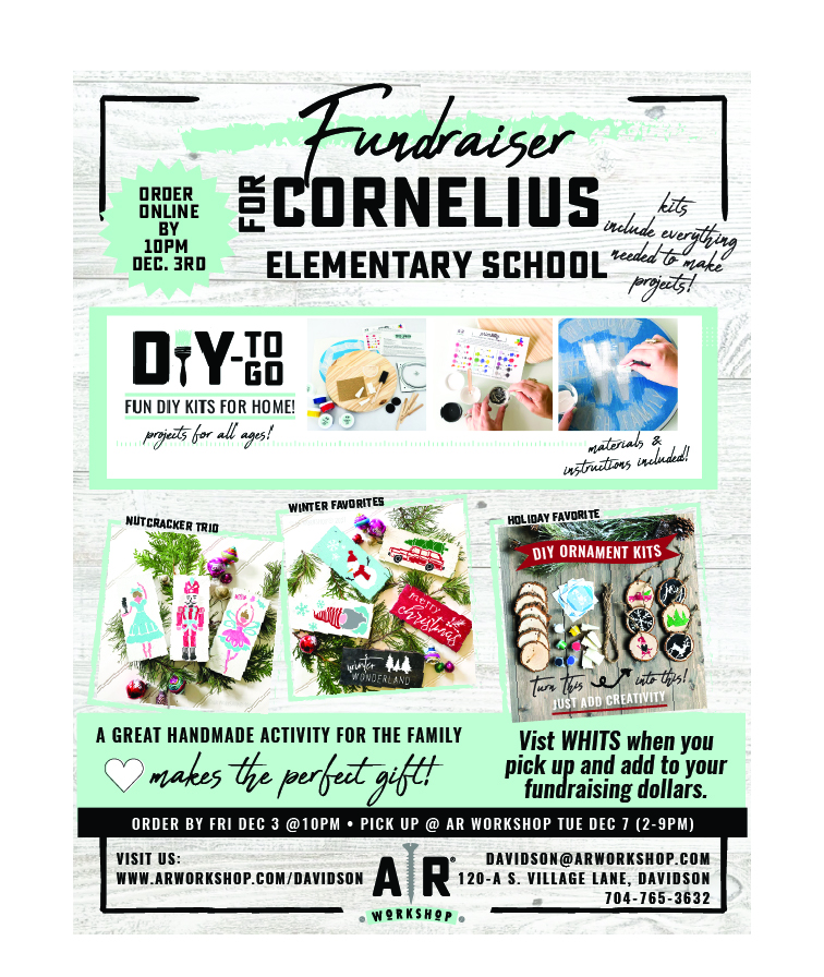 Looking for craft projects to do with your family during the holidays? The CES PTO has partnered with AR Workshop-Davidson to bring you easy and fun DIY projects you can do at home! AR Workshop will donate a portion of the proceeds to the CES PTO as we continue to support our teachers and staff.