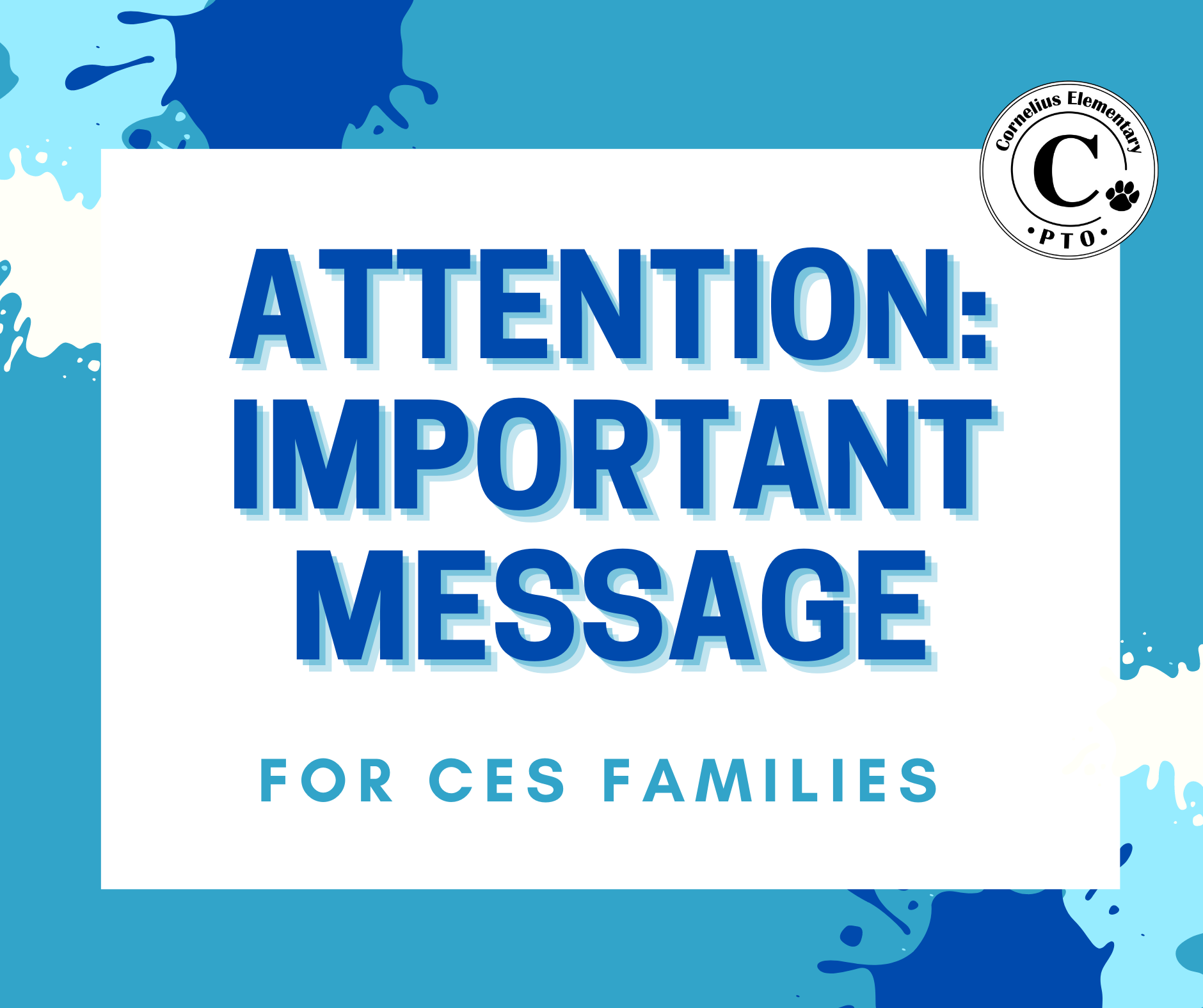 The CES PTO is sad to share that the Daughter Dance Event planned for 2/5, and the Son Event planned for 4/1 are cancelled in consideration of the current COVID trends. We hope you will keep these dates on your calendar as a reminder to do something special with your Cougars! The PTO will watch for an opportunity to plan an outdoor family event for the spring.