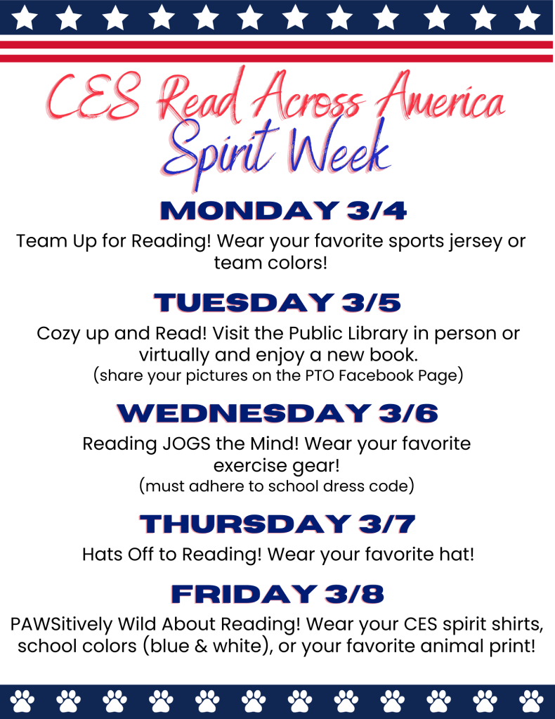 Spirit Week Begins Monday, 3/4! February 28, 2024 Share this: Click to share on X (Opens in new window) X Click to share on Facebook (Opens in new window) Facebook Click to print (Opens in new window) Print Click to email a link to a friend (Opens in new window) Email Like Loading... Related