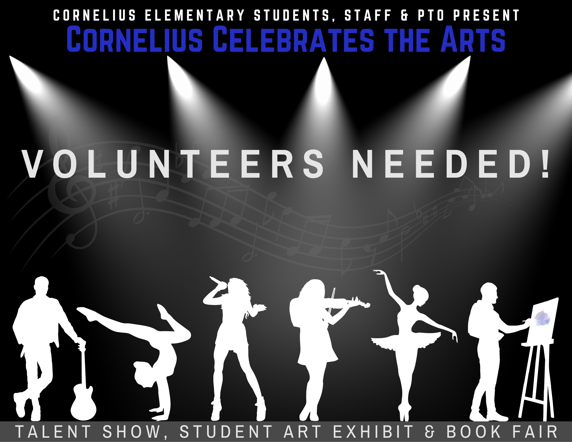 CES families, we need you! Your CES PTO is preparing for one of our largest, and best events of the school year! Cornelius Celebrates the Arts begins next Monday, March 18th. During this time we will host the Scholastic Book Fair, an Art Expo featuring at least one piece of original artwork from each student, and the CES Talent Show!