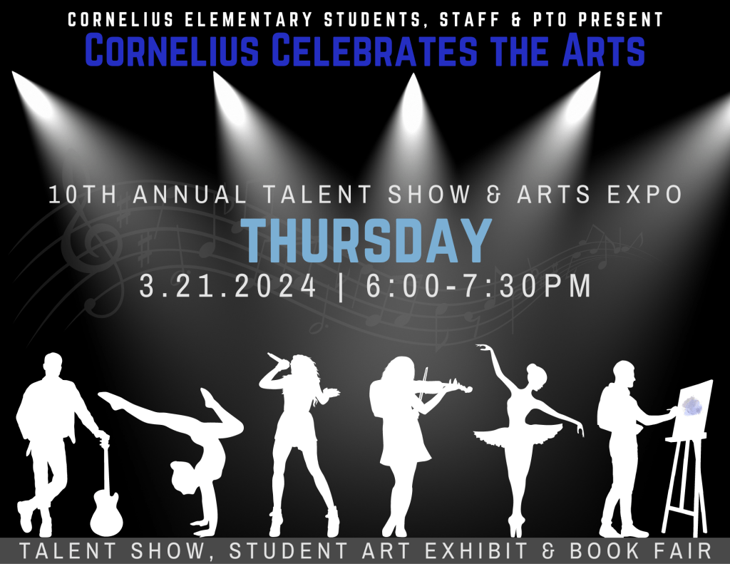 Get Ready, CES! We’re coming to you live THIS THURSDAY with painters, singers, gymnasts, dancers, comedians, and so much more, as we present Cornelius Celebrates the Arts! There is something for everyone, and we hope every CES family will join us! Here’s the lineup: