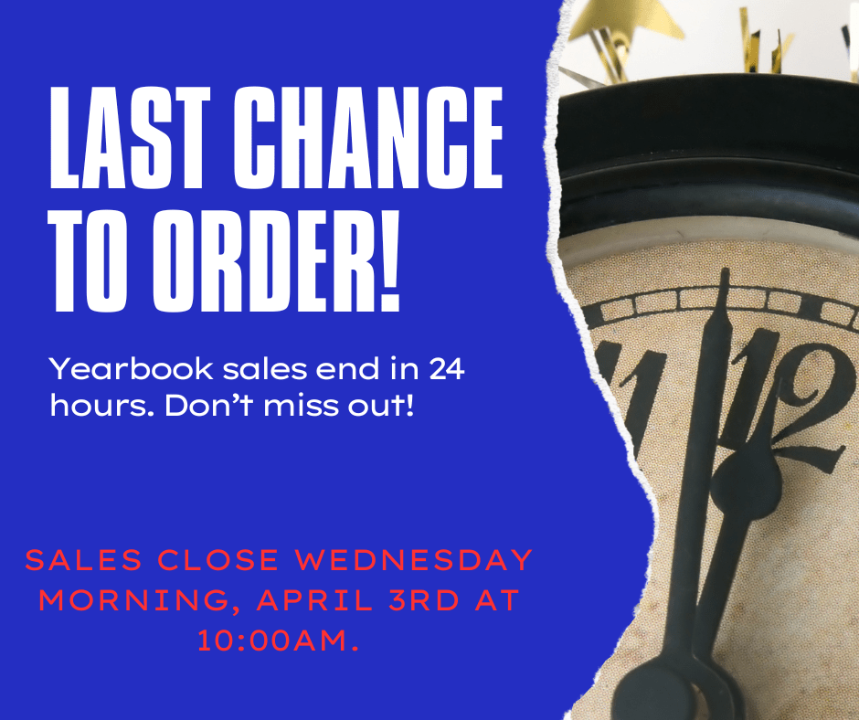 Yearbook sales are closing in just 24 short hours on Wednesday at 10am! Don’t miss your chance to purchase a copy for your 2023-2024 school memories.