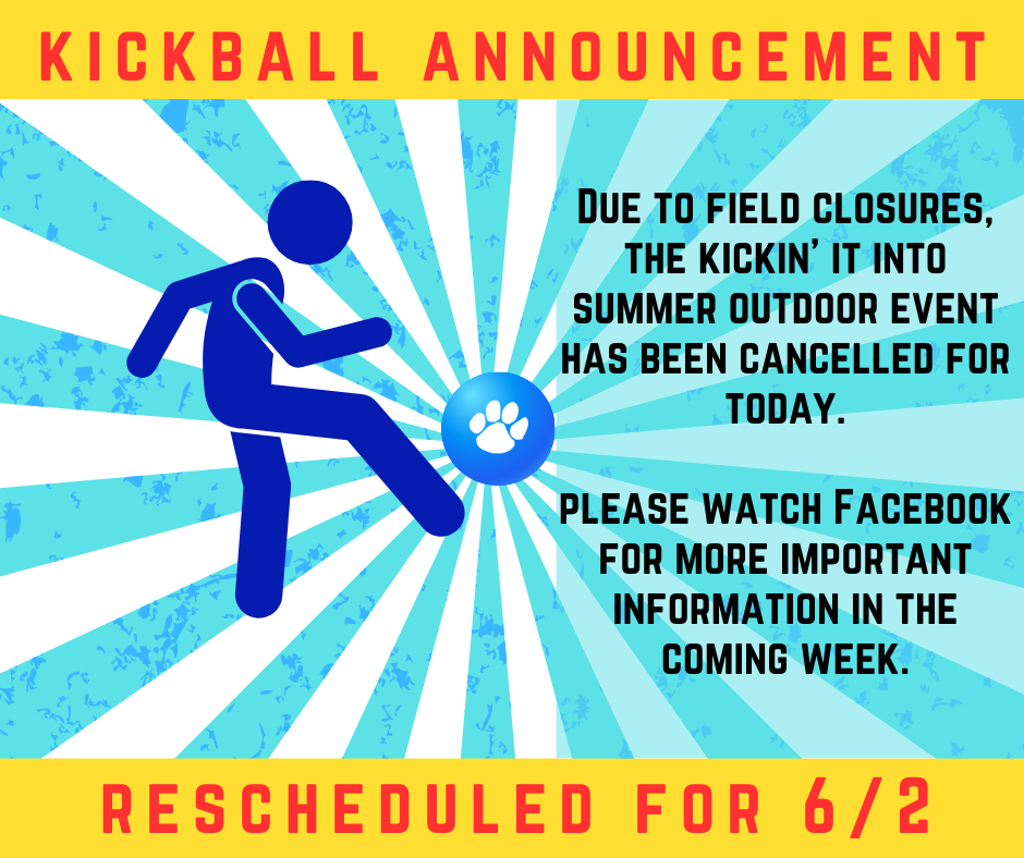 Kickball Event Postponed! May 19, 2024 Share this: Click to share on X (Opens in new window) X Click to share on Facebook (Opens in new window) Facebook Click to print (Opens in new window) Print Click to email a link to a friend (Opens in new window) Email Like Loading... Related