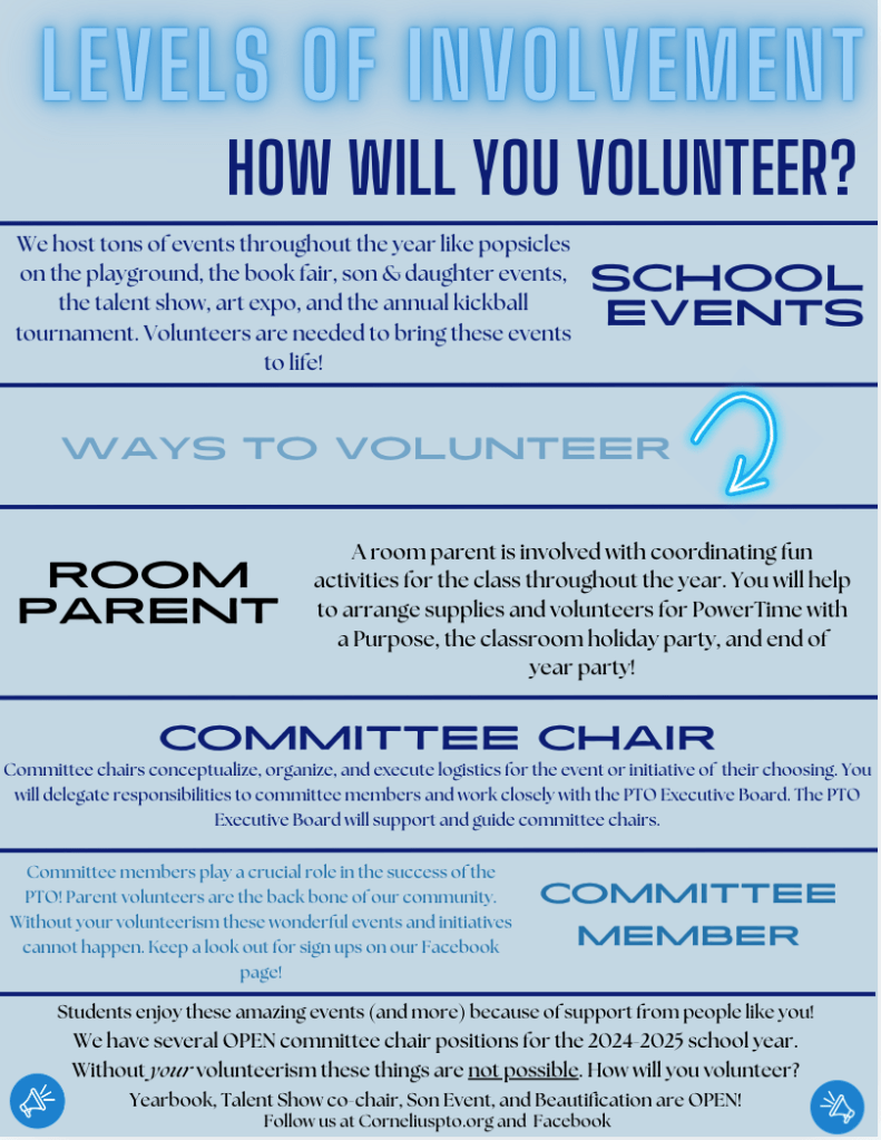 The official website of the Cornelius Elementary PTO — stay updated on events, volunteer opportunities, spirit wear, and ways to support our students and teachers.