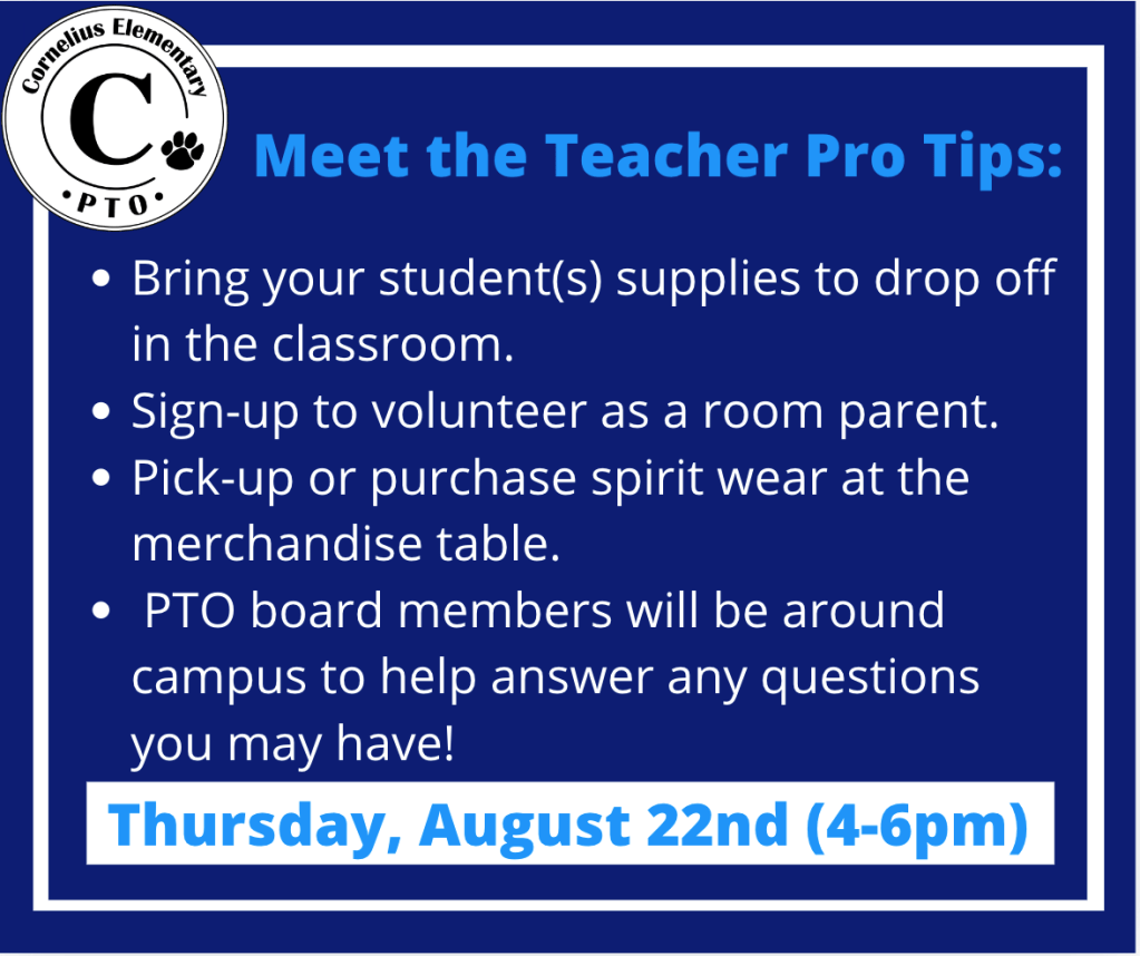 The official website of the Cornelius Elementary PTO — stay updated on events, volunteer opportunities, spirit wear, and ways to support our students and teachers.