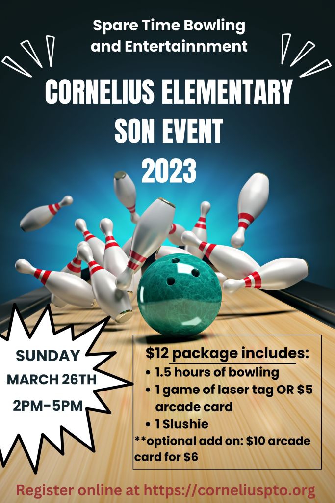 The Cornelius Elementary PTO is excited to announce that our Son Event this year will occur on Sunday, March 26th from 2pm-5pm! Tickets will be on sale beginning March 1st – March 22nd on the CES PTO Online Store.